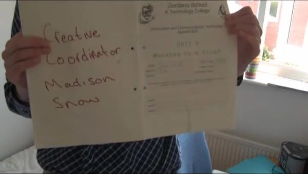 Having the names of the 'creative team' within the frame of the shots allowed us to use some creative blossom in thinking about different ways we could display the names of who created the film. The names allowed us to save time through editing as I did not have to create the names as titles and place them in.