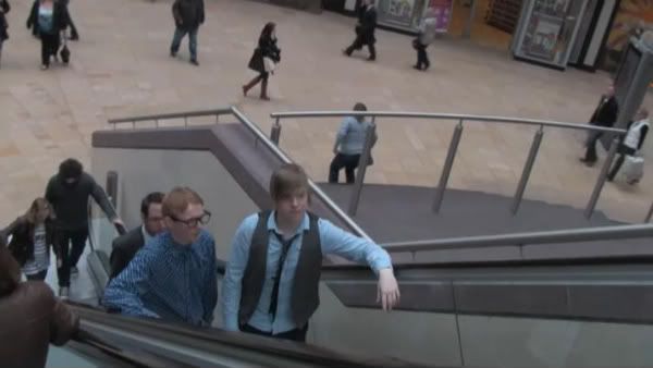 The escalator shot was interesting to shoot, we had both characters moving one way, then the then camera moving down, we had never done this before, but the escalator's where open to us for using, so we went for it.