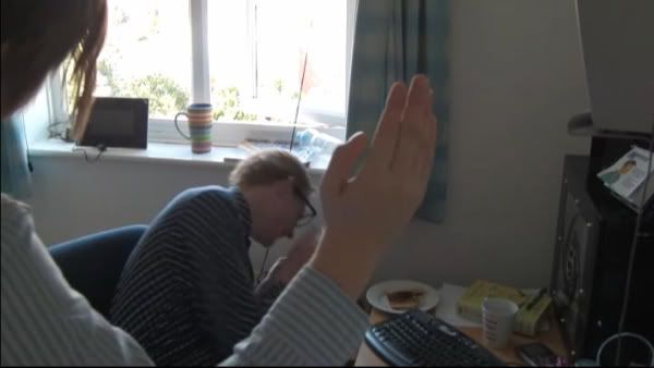 The biggest weakness within our camera angles was the shot of matt speaking within my room, he is in the same sentence, but the camera changed direction and jumps. The poorest thing from the film in my perspective. The camera was moved within the first take, after putting it back in what we thought was the same position, turned out wrong, we finished then only found it in the editing process, when it was too late to re film as the lighting had gone. This was a complete mess up, which will give our film a huge amatueristic angle, something which we would have liked to change, but it became too late in the shooting schedule and time of day.